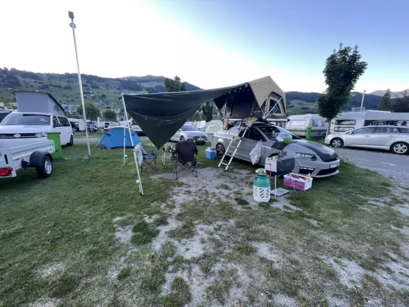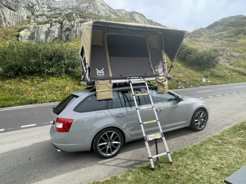 Unser Dachzelt inkl. Vorzelt, ist ideal für Paare, die einfache und unkomplizierte Ferien geniessen möchten. Das Dachzelt ist ausgelegt für 2 erwachsene Personen. Das Dachzelt ist in wenigen Schritten innert zwei Minuten aufgestellt und bereit für die Nacht. Auf jeder Seite des Zeltes hat es Öffnungen mit Moskitonetzen, welche für eine gute Belüftung und ein 360° Panorama sorgen. Das Zelt ist super resistent und kann somit in allen Konditionen verwendet werden. Das Dachzelt wird ohne Fahrzeug vermietet. Autodachträger für offene und geschlossen Dachreeling sind vorhanden.