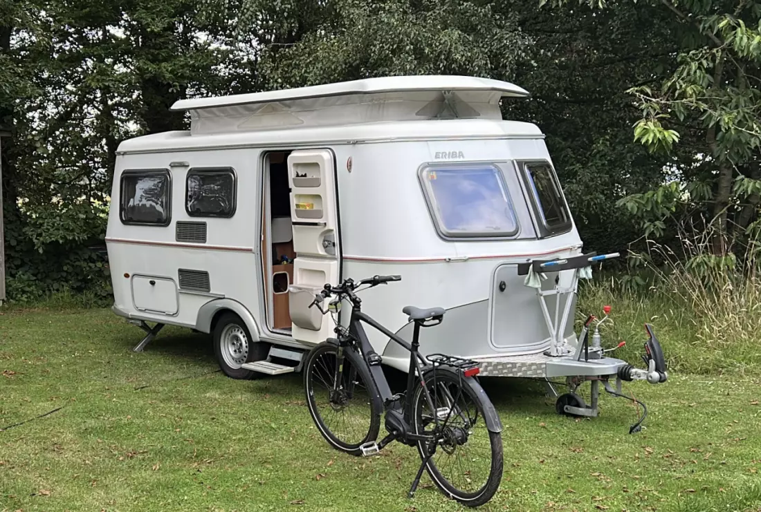 Der Kultwohnwagen Touring von Eriba. Er lässt sich ohne Anhänger Führerausweis (je nach Zugfahrzeug) mit fast jedem Fahrzeug (FZ Ausweis unter der Nummer 31 Anhängelast mind. 1000 Kg) ziehen. Kaum Windwiderstand. Das ist drin und dabei. Doppelbett, Sitzgelegenheit die zu einem weiteren Bett umfunktioniert werden kann. WC, Gasherd, Heizung, Kühlschrank, Geschirr, Gasflasche (Füllung mind. 4 KG), Veloträger 2 Velos mit lenker verstellen. E-Bikes wird schwierig.