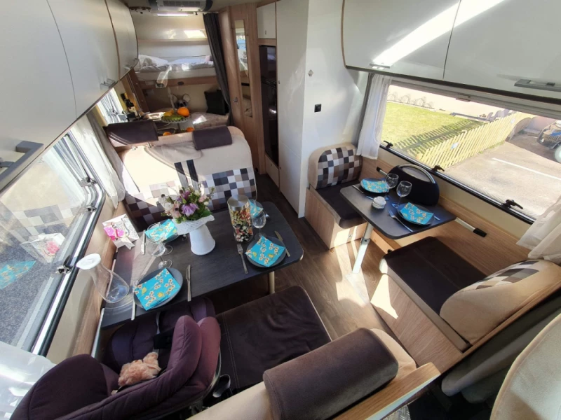 Originaltext anzeigenSehr gut geplantes Familien-Wohnmobil mit vier fertigen Betten (Schlafnische und Etagenbett) und der Möglichkeit, die große Sitzgruppe zu zwei weiteren Betten umzuklappen. Das Wohnmobil ist mit zwei LPG-Flaschen ausgestattet, von denen mindestens eine voll ist. Diese sind im Mietpreis enthalten. Eine Flasche reicht bei normalem Verbrauch für eine Woche. Zur Ausstattung gehören vier Stühle und ein Campingtisch (110 x 80 cm). Ein tragbarer, klappbarer Holzkohlegrill ist ebenfalls vorhanden. Sämtliche Gebühren wie City-Maut, Straßen- und Brückengebühren sowie Bußgelder für Geschwindigkeitsübertretungen trägt der Mieter. Das Wohnmobil wird vollgetankt übergeben und zurückgegeben. Bei nicht im Voraus vereinbarter Verspätung wird eine Gebühr von 300 € pro angefangener Stunde erhoben. Eine LPG-Flasche ist inklusive. Sollte mehr benötigt werden, trägt der Mieter die Kosten.