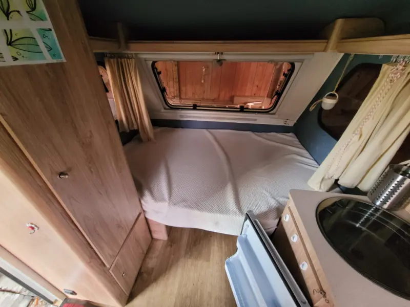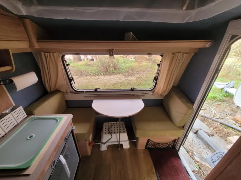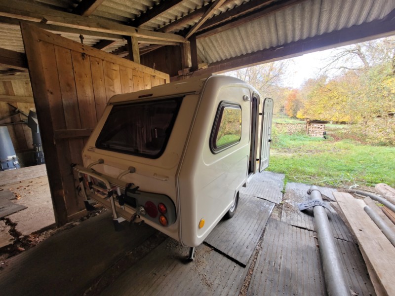 Härziges, kleines Wohnwägeli für 2 Personen. Der Fahrradträger ist für zwei Fahrräder optimal (ein kleines, ein grosses), zusätzlich wäre auch noch ein Kupplungsträger für vorne verfügbar, auf welchem ein eigener Fahrradträger (mit Kupplung) angebracht werden kann. Es hat einen Kühlschrank mit kleinem Gefrierfach, läuft über Strom auf den Stellplätzen.