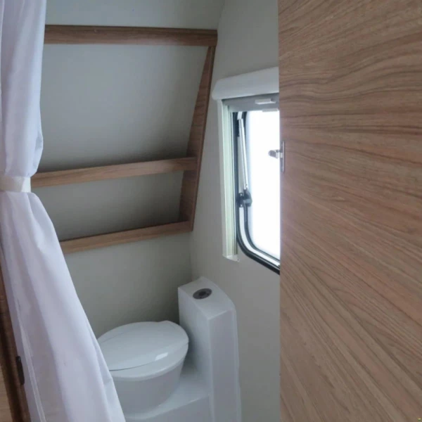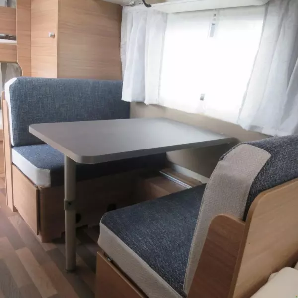 Klimaanlage kann bei Bedarf dazu gemietet werden. Dieser Wohnwagen kann bequem per Mover und Fernbedienung einrangiert werden.