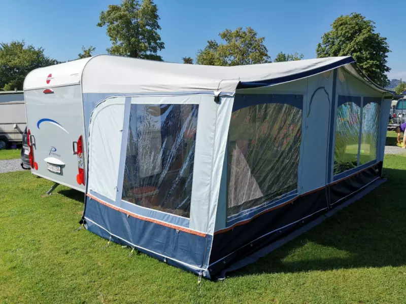 - Camping-Tisch mit 4 Stühlen - DVD-Player - Matratzen: 1x 140x210cm, 2x 80x210cm (ohne Bezüge) - Moskitonetze: bei allen Fenstern, nicht bei Türe - 40l Frischwassertank - Abwassertank (extern) - Autobahnvignette CH (elektronisch) - Anhängerkupplung mit Antischlingerschutz (Alko AKS 1300) - Zugelassen für max. 100 km/h (abhängig vom Zugfahrzeug, keine Gewähr) - Gasprüfung bis 31. August 2026 (auf einigen Campingplätzen obligatorisch) - MFK Mai 2024