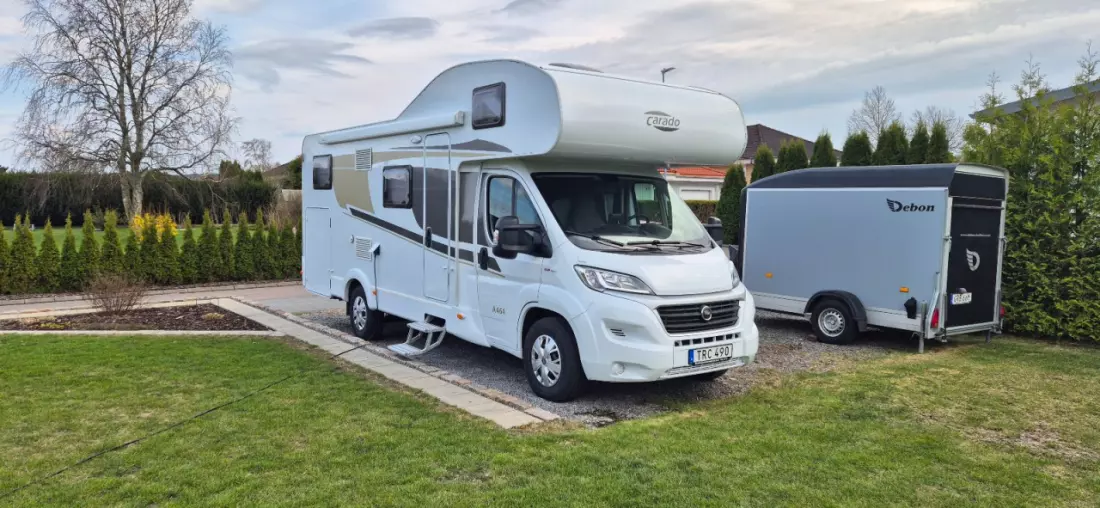 Mit Google-Übersetzer übersetzenPerfekt för familjesemestern. Två dubbelsängar, stor kyl samt separat frys. Stort garage där man kan få med sig mycket samt cykelställ för 4 cyklar.