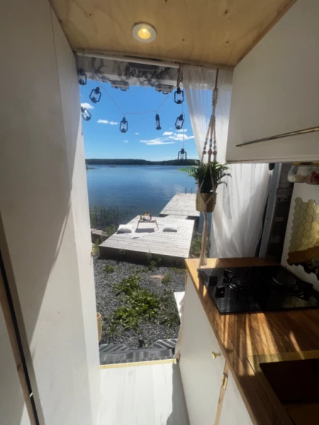 Mit Google-Übersetzer übersetzenVi hyr ut vår charmiga egenbygda campervan . Perfekt för äventyr där du vill ha med dig allt och ändå ha friheten att bo var du vill. Vanen har 2 sittplatser och 2 sovplatser i säng som bäddas ut till 140x180 cm. Vanen har fullutrustat kök med gasolplatta, 80L kyl med frysfack, sittplatser och utfällbart bord. Finns ytterligare ett utfällbart bord bak i vanen. Rinnande vatten på 2x25 liter färskvatten och 10 liter gråvatten. 2 garderober med förvaring inne i bilen. Campingdusch med duschtält samt komposteringstoalett Air Head. Fläkt i toautrymmet. Takfläkt för ventilation som kan köras även när det regnar. 12V elsystem med USB-uttag och gelbatteri som laddas när du kör samt av solpaneler. Inverter samt dieselvärmare finns. Stege & däck på tak där man kan njuta av härliga solnedgångar. Belysning utvändigt runt hela bilen. Kan parkeras på vanliga parkeringsplatser och köras med B körkort. Hämtas/lämnas i Örnsköldsvik strax norr om höga kusten. Övervakad parkering finns för din bil under uthyrningsperioden. Köksgeråd , vinglas , smörgåsgrill, gasolgrill, omnia ugn ,sällskapsspel, picknickfilt, sängbricka. Uppblåsbara utekuddar. USB driven ljusslinga, campingdusch, duschtält, litet strandbord, . Utemöbelset. Matta för utomhusbruk, strandmadrasser. Liten kylväska samt USB bordslampa samt liten USB fläkt. Batteridrivna lampor att hänga utomhus. Uppblåsbar soffa. Hängmatta. Vid bokning får du full info om utrustning samt våra bästa vanlife tips. Hoppas du kommer älska bilen lika mycket som oss.