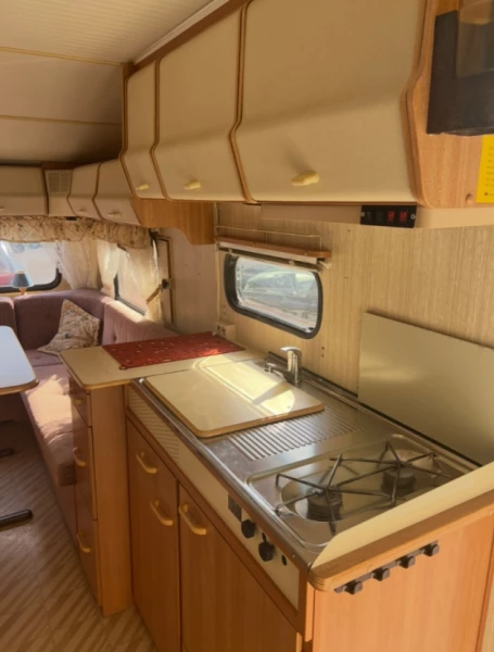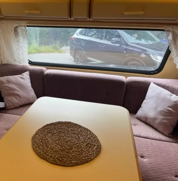 Originaltext anzeigenSchöner, heller und gepflegter Solifer 550DL Wohnwagen aus dem Jahr 1989 mit Batterie und Solaranlage – ideal für ein paar Nächte autarkes Campen. Bis zu 7 Personen. Geräumig und auch für Familien mit Kindern geeignet. Wir haben selbst Kinder. Separates Schlafzimmer im Heck mit Tür (140 + 80 cm). Perfekt für Kinder. - 1 großes Bett (180 x 200 cm). Bietet bequem Platz für 3 Erwachsene oder mehrere Kinder. Es wird aus der großen Sitzgruppe im Bug des Wohnwagens heruntergeklappt. - 1 Bett (140 x 200 cm). Bietet Platz für z. B. 2 Teenager oder 3 jüngere Kinder. Auch 2 Erwachsene finden hier Platz, wenn sie eng beieinander liegen möchten. Nicht zum Bettenmachen geeignet. - 1 Hochbett (80 x 200 cm) mit Leiter und Absturzsicherung. Maximale Belastung: 80 kg. Bietet beispielsweise Platz für 1 älteres Kind, 1 kleineren Erwachsenen oder 2 kleinere Kinder nebeneinander. Bitte fragen Sie uns, wie wir 2 Erwachsene und 5 Kinder zwischen 4 und 18 Jahren unterbringen können oder wie Ihre Familie Schlafmöglichkeiten finden würde. Je nachdem, ob Sie frei zelten oder ein Vorzelt aufstellen möchten, kann die Ausrüstung an Ihre Bedürfnisse angepasst werden (Gartenmöbel etc.).