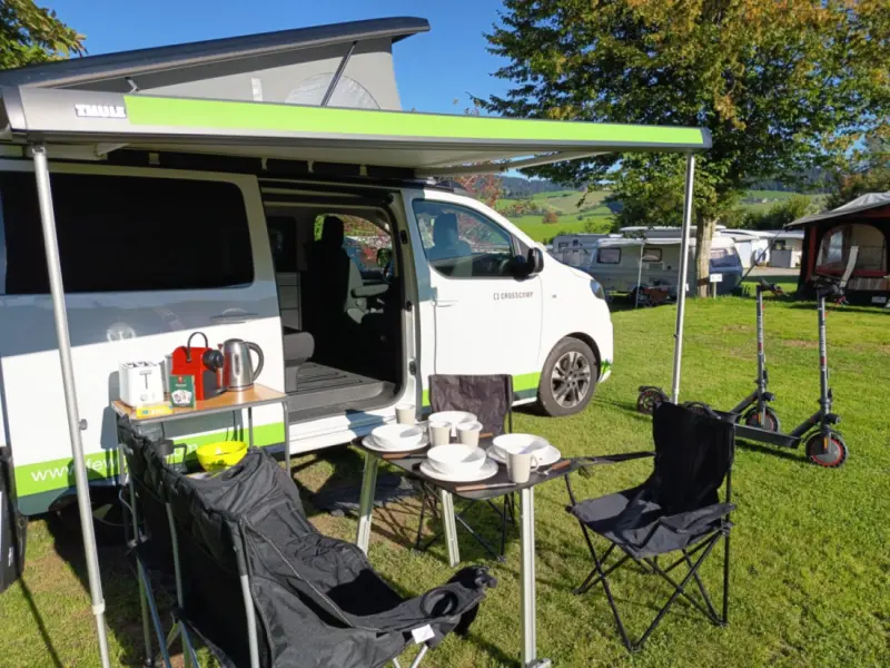 inklusive: - Tischtennis-Schläger 4 Stück - Badminton Set - Karten - und Würfelspiel - Nespresso-Maschine, Wasserkocher und Toaster inklusive - kleines Zelt inklusive - Schuh-Organizer - Winterisolierung für das Aufstelldach - Standheizung mit Diesel - Fahrradanhänger - Nespresso-Maschine, Wasserkocher, Toaster, Geschirr - Bettlaken - Auffahrkeile - Parkplatz für Privat-PKW optional - 2 E-Scooter für je CHF 18.00.- - Gasgrill 18 CHF 18.00.- - Stand Up Paddel CHF 18.00.- - Hängematte CHF 18.00.- - Anhänger bis 750kg CHF 100.00.-