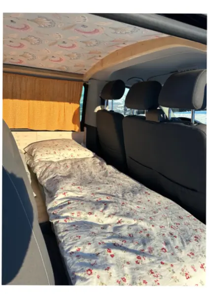 Das fix eingebaute Bett ist 160x200cm gross. Es gibt die Möglichkeit optional einen dritten Schlafplatz für ein Kind (bis ca. 1.55m) einzubauen (s. Fotos) 1 x Lüftungsgitter mit Mückenschutz (kann auch bei Regen verwendet werden) Für die Heckklappe haben wir einen einfachen Mückenvorhang. Unter dem Bett hat es Platz für 9 Euronorm Kisten. Ein Campingtisch, Geschirr sowie diverse eher einfache Campingausrüstung kann ebenfalls auf Anfrage dazugebucht werden.