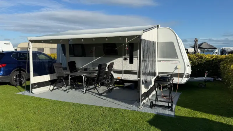 Mit Google-Übersetzer übersetzenDethleffs Generation Scandinavia 545 QMK Jubilæumsudgave (2019) Helårsisoleret luksuscampingvogn i topklasse – ideel til både sommer- og vinterferie. Indregistreret 02-07-2019. Totalvægt 2.000 kg. Længde ca. 7,8 m. Bredde 2,5 m. 5–6 sovepladser. Indrettet med dobbeltseng på tværs, separat børneafdeling med køjer, stor U-sofa samt rummeligt badeværelse med mulighed for brusekabine. Meget veludstyret med bl.a. Alde centralvarme og vandbåren gulvvarme, Truma Aventa Comfort klimaanlæg (ekstra stille), Truma XT mover, Dual Control med crash sensor, iNet-styring, city-vand, Thule markise med stormsikring og rain blockers, Isabella Commodore fortelt samt cykelholder til 3 cykler. Apple TV og router med internet medfølger — virker overalt i Danmark. Udlejes komplet og 100 % ferieklar — service til 6 personer, havemøbler samt et meget veludstyret køkken med alt nødvendigt udstyr. Levering og opsætning kan tilkøbes (mod merbetaling): Er vognen for tung til din bil – eller ønsker du ikke selv at køre med campingvogn? Så tilbyder jeg levering, opsætning og afhentning mod ekstra betaling. Vognen kan leveres til en campingplads i Danmark samt opstilles og hentes igen efter endt lejeperiode. Priser: • Kørsel: 2,75 kr/km (beregnes tur/retur × 2) • Opsætning/nedtagning af markise med sider: 300 kr • Opsætning/nedtagning af markise uden sider: 200 kr • opsætning/nedtagning af fortelt 1000 kr Dette er ikke inkluderet i lejeprisen og aftales særskilt ved booking. Fleksibel ind- og udtjekning samme dag efter nærmere aftale.
