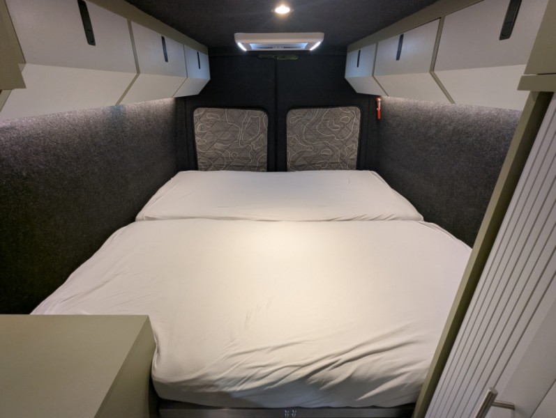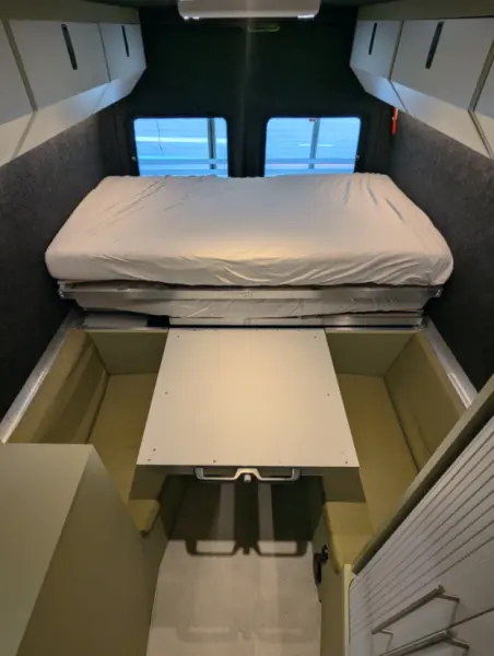 Der Sprinter wurde 2024–2025 auf einer sehr guten Basis technisch modern und mit viel Liebe zum Detail zum Camper ausgebaut. Zuvor war das Fahrzeug als Sanitäts- und Kommandowagen der freiwilligen Feuerwehr im Einsatz und hat dabei nur knapp 20'000 km zurückgelegt.