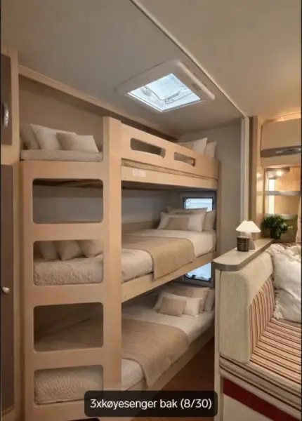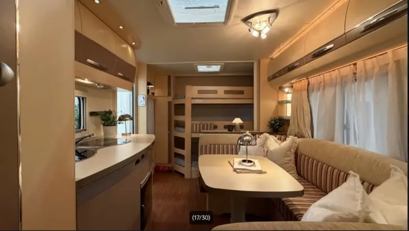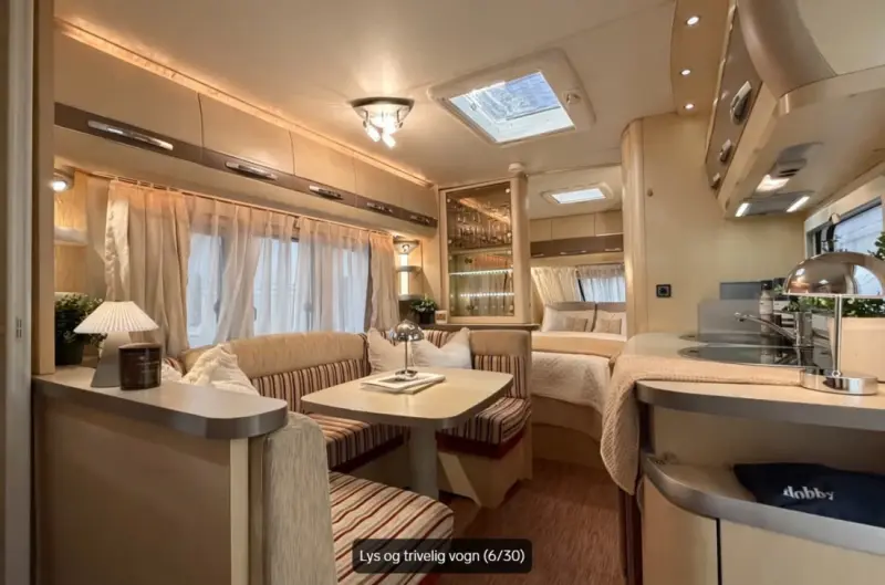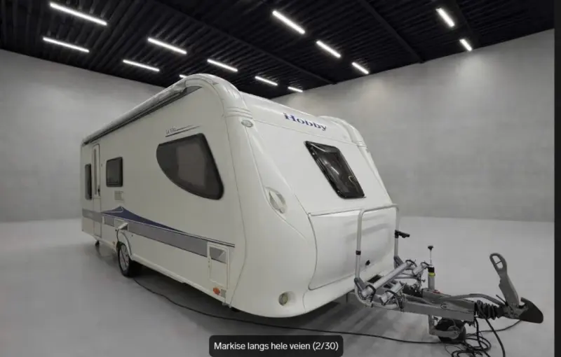 Mit Google-Übersetzer übersetzenFlott familievogn i den sjelden utgaven fra Hobby "La Vita". Veldig flotte vogner med lyst og trivelig interiør.Superpraktisk løsning i denne med hele 3 køyer bakerst i vogna, dobbeltseng og bad foran samt en stor sittegruppe på midten som enkelt gjøres om til en ekstra dobbeltseng ved behov. Total 7(!) sengeplasser. Godkjent fukttest utført Mars 2026.Det følger med både markise og stort Isabella fortelt, samt sykkelstativ foran og bak så her er alt klar for årets sommerferie!Fint utstyrt vogn med blandt annet:- Markise- Truma oppvarming på Gass og 230V- Gulvvarme- Dusj- Varmtvann- Kjøleskap med fryser- Stekeovn- Lesespotter- Stemningsbelysning- Fast toalett- Blendegardiner- Myggnettinger- Markise- Sykkelstativ- 3xkøyer- TV- Vitrineskap med "Hobby" glass- Ventilator på kjøkken- 3xkokebluss+++