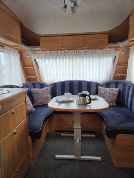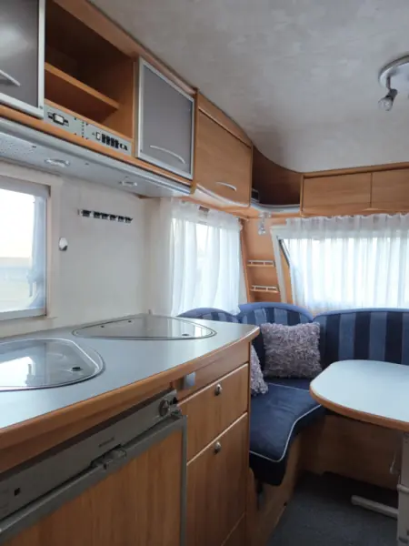 Originaltext anzeigenEin Wohnwagen in gutem Zustand. Alle Geräte funktionieren. Praktischerweise befinden sich separate Toiletten- und Duschkabinen im hinteren Bereich des Wohnwagens. Kleine Hunde sind erlaubt.