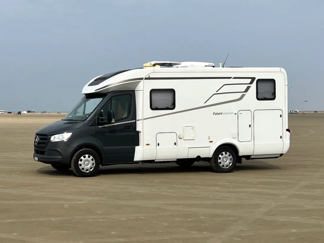 Sehr komfortables und hochwertig ausgestattetes Wohnmobil auf Mercedes-Basis – perfekt für entspanntes Reisen mit viel Luxus. Dank grosser Lithium-Batterie und grosszügigem Wassertank ist auch autarkes Stehen problemlos möglich. Der integrierte Veloslide ermöglicht den einfachen und sicheren Transport von Fahrrädern in der Garage. Ideal für Paare, die gerne unabhängig unterwegs sind und die Welt mit dem Velo entdecken möchten.
