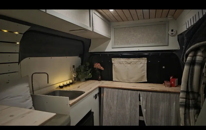 Eu-godkjent og NAF-testet. Brannalarm Gassalarm Brannslukker Førstehjelpsutstyr Usb ladere Støvsuger Vanndunk med elektrisk pumpe og tank til gråvann. Dårlig ryggekamera Lommelykt, utelykter, pyntelys To campingstoler Campingbord Elektrisk utedusj Dusjforheng Luftmadrass til forsetet Elektrisk pumpe til luftmadrass Tarp Dieselvarmer Takvifte Takspotter