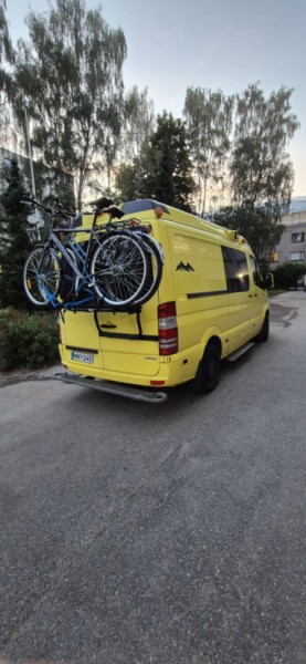 Mit Google-Übersetzer übersetzenPyöräteline kahdelle pyörälle Sänky kahdelle Kaasupullo ja rengaspoltin Mikroaaltouuni Sisävalot Thermopeitteet Invertteri ja sähköt Paljon tavaratilaa