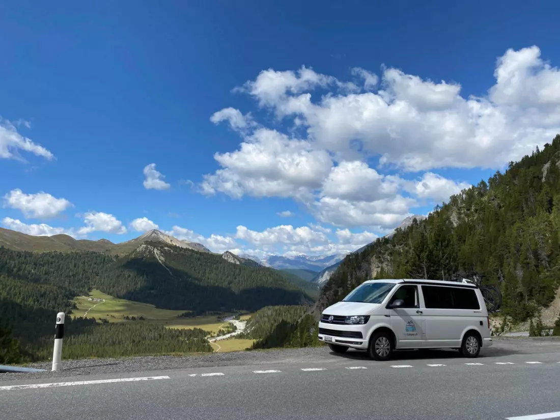 Ich arbeite bei MyCamper und vermiete meinen eigenen Camper über die Plattform. Unser VW California T6 Beach ist in hervorragendem Zustand und kommt mit kompletter Campingausrüstung. Das heisst Gaskocher, Isomatten, Küchenmöbel, Kühlbox, Geschirr und Calicap für die Isolation des Aufstelldachs. Im Aufstelldach können 2 Personen schlafen, unten kann man ein breites Bett einrichten, auf dem gut 2 Erwachsene und 1 kleines Kind schlafen können.