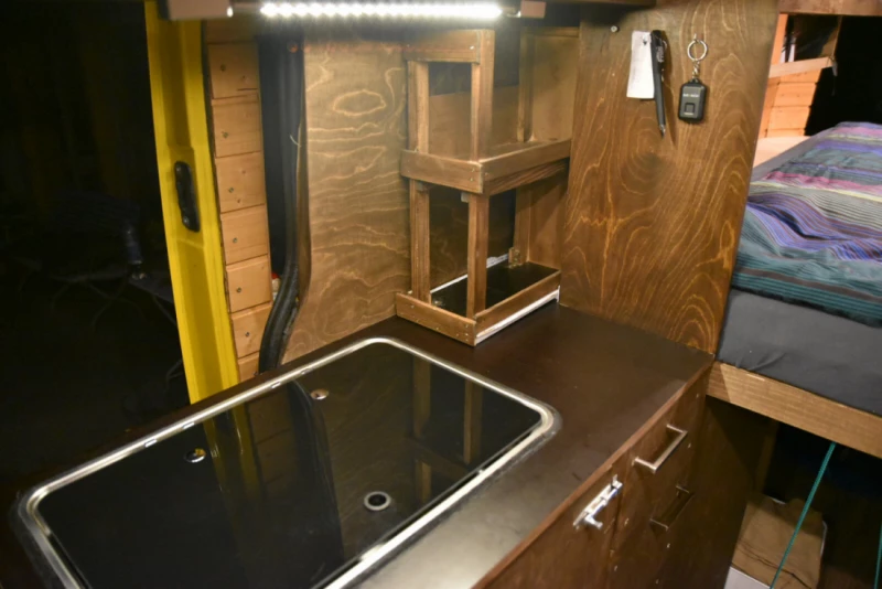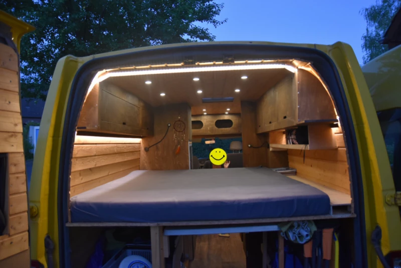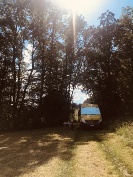 Gepflegter Campingbus mit 2 Schlafplätzen für 2 Erwachsene. Der Bus ist bestens mit allem ausgerüstet, was man zum Campen braucht. Bei Schlechtwetter hat man im Bus genügend Platz, um gemütlich was zu lesen, zu kochen oder zu spielen .. Der Tisch kann in wenigen Handgriffen in einen kleinen 3. Schlafplatz/ein Sofa umgebaut werden. Stromversorgung: >> Aufladen 1: 2 x 100 Watt Solarpanel auf dem Dach >> Aufladen 2: per Steckdose 230V (auf dem Campingplatz) – 3 x 230V Steckdosen – 2 x USB Steckdosen Mitte Fahrzeug – 4 x USB Steckdosen beim Bett – 2 x USB in der Fahrerkabine Lichter: – 2x Lese-Lichter beim Bett – Deckenbeleuchtung – indirektes Wandlicht für gemütliches Ambiente – separates Licht in der Küche – Licht bei der Ladefläche Kühlschrank: – extra leise – mit Gefrierfach Küche: – 1 fix installierter Gaskocher – 1 portables Gasköcherli – 20 Liter Frischwasser-/20 Liter Abwasser-Tank – viel Stauraum – Grundstock an Gewürzen/Öl/Essig/usw. – komplettes, unkompliziertes Besteck-/Geschirr-Zeugs – Ersatz-Gasflasche – Gas-Alarm Weiteres: – 2 x kleine Ventilatoren (gegen Hitze) – UE Megaboom – einige Spiele (indoor und outdoor) – einige Bücher – 2 x Hängematte – BodyBoard – … – Wolldecken – rundum isoliert mit Armaflex gegen Hitze/Kälte – Schall-Isolation (für zB langes Ausschlafen) – der Innenbereich kann sehr gut abgedunkelt werden – 2 Fenster können geöffnet werden (mit Fliegengitter) – Türen hinten und vorne/Seite – grosses Bett: 190 x 140 cm – Markise – sehr viel Stauraum innen – grosser Stauraum von innen und aussen zugänglich – …