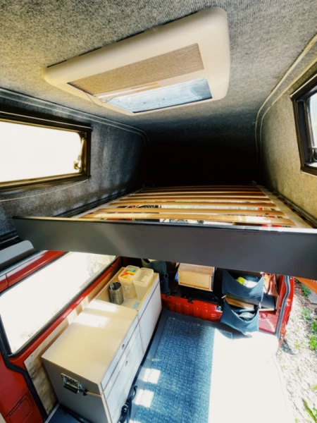 Voir le texte originalL'expérience camping-car à l'état pur ! 😊🚗 Ce van a été aménagé par son propriétaire et possède tout le nécessaire pour camper en toute simplicité. La banquette arrière se transforme en lit double en un clin d'œil. Le camping-car est équipé d'un sommier à lattes coulissant, offrant un couchage supplémentaire pour une troisième personne. Cependant, il est recommandé pour deux personnes, car l'espace risque d'être un peu restreint. Ce Mazda E2000 est un fidèle compagnon depuis des années et se distingue par sa grande fiabilité. Équipements : - Réfrigérateur (230 V + 12 V) - Alimentation (230 V + 12 V, environ une journée d'autonomie) - Réservoir d'eau propre de 25 L - Table et chaises de camping - Vaisselle de camping - Auvent - Réchaud à gaz portable (2 feux)