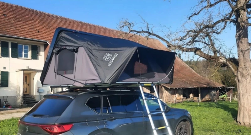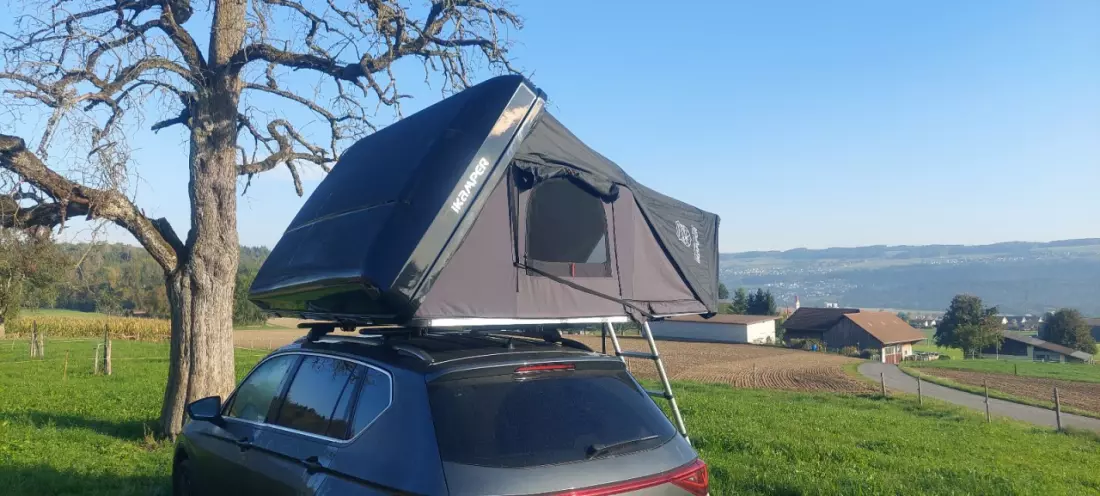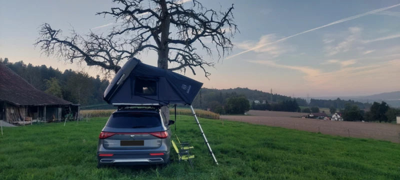 Voir le texte originalVous louez uniquement la tente de toit, sans le véhicule. Des accessoires sont également disponibles à la location sur demande ; consultez les options supplémentaires. La tente de toit s'adapte à la plupart des véhicules dont la charge utile dynamique sur le toit est d'au moins 75 kg. Deux barres de toit suffisent. La tente de toit est prête à l'emploi et se monte en 60 secondes environ. Elle peut accueillir confortablement jusqu'à quatre personnes. Elle offre de nombreux atouts, comme une carte du monde brodée, un éclairage LED à intensité variable et une fenêtre d'observation des étoiles sur le toit. Vos animaux de compagnie sont les bienvenus ; cependant, ils ne sont pas autorisés à l'intérieur de la tente de toit. Pour toute question, n'hésitez pas à me contacter. Bonne aventure !