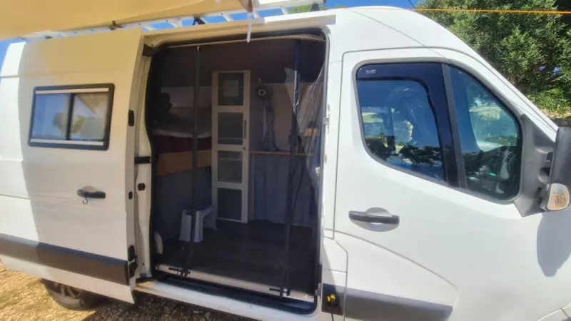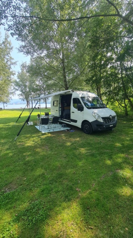Voir le texte originalNotre cher Bjørn a passé deux ans comme véhicule d'assistance après sa naissance. Puis, la soif d'aventure l'a saisi et il a voulu découvrir le monde. Heureusement, Alain, menuisier de formation, l'a libéré de ses tâches ménagères et a aménagé avec amour son intérieur. Maintenant, Bjørn est prêt à partir à la découverte du monde avec vous. Le Bjørn est équipé des caractéristiques suivantes pour un voyage tout confort : - Panneaux de bois élégants à l'intérieur avec isolation intégrée - Sol en PVC imitation bois pratique - Lit transversal intégré de 185 x 155 cm, équipé d'un matelas et d'un surmatelas neufs pour un confort optimal - Penderie intégrée à cinq étagères pour un confort comme à la maison - Évier alimenté en eau courante par un réservoir de 20 L et réservoir d'eaux grises/eaux usées de 10 L (possibilité de remplir 10 L supplémentaires pour le transport et l'utilisation) - Glacière à compresseur de 30 L --> L'évier, la glacière et le système électrique du van fonctionnent grâce à une batterie auxiliaire intégrée. De plus, le véhicule est équipé d'une station de recharge, rechargeable en roulant ou à l'arrêt à l'aide d'un panneau solaire ou d'une source d'alimentation externe. Le panneau solaire est fourni avec le van. Grâce à une mise à niveau intégrée, Bjørn peut également être branché sur le secteur (230 V) à l'aide d'un enrouleur de câble et de l'adaptateur fourni. Vous n'aurez ainsi plus à vous soucier du niveau de charge de la batterie. Avec son chauffage intégré, Bjørn vous gardera bien au chaud même par temps frais. De plus, son espace généreux vous permettra de profiter confortablement de vos voyages dans les chaises de camping, même par temps de pluie. Bjørn est équipé de deux chaises de camping et d'une table. Un réchaud et un barbecue à gaz sont également inclus (les cartouches de gaz sont vendues séparément). De la vaisselle pour six personnes, des casseroles et une bassine sont également fournies. Une douche extérieure portable est incluse, mais vous aurez besoin d'un réservoir d'eau supplémentaire. Il y a également de la place à l'arrière du véhicule pour transporter deux vélos, d'un poids maximal de 15 kg chacun. Options disponibles en supplément : Cartouches de gaz : 5 € l’unité Support à vélos : 5 € par jour Toilettes sèches : 5 € par jour Paiement en espèces ou par Twint
