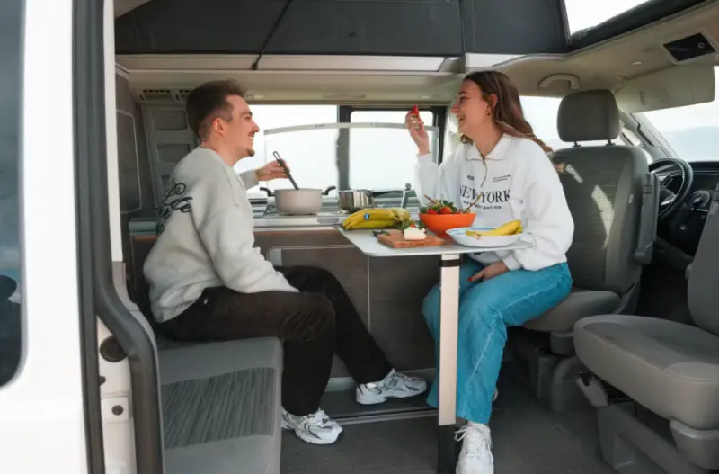 Voir le texte originalLe California Standard est un camping-car compact et polyvalent, idéal pour les voyageurs souhaitant explorer villes et nature sans compromis. Pouvant accueillir jusqu'à quatre personnes, ce modèle offre un agencement astucieux optimisant confort et espace, ce qui le rend parfait pour les couples, les groupes d'amis ou les petites familles. Vous recevrez un camping-car similaire à celui présenté en photo, avec des caractéristiques et un état comparables. Bien que l'agencement puisse légèrement varier, chaque modèle Active Bunk offre un intérieur confortable et fonctionnel, équipé de tout le nécessaire pour un voyage mémorable. Les couchages comprennent un lit de toit relevable pour deux personnes et des sièges arrière entièrement inclinables et convertibles en lit double. Les sièges arrière coulissants permettent de créer des espaces modulables pour manger, se détendre ou dormir, optimisant ainsi chaque centimètre carré. Le coin cuisine, compact mais fonctionnel, est équipé d'une plaque de cuisson à deux feux, d'un évier et d'un réfrigérateur. Il vous offre tout le nécessaire pour préparer des repas simples en voyage. L'agencement intérieur est conçu pour être entièrement adaptable. Les sièges arrière inclinables vous offrent un espace détente le jour et se transforment en lit la nuit, tandis que le toit relevable crée un espace de couchage surélevé et plus haut. De nombreux rangements sont disponibles dans tout le van pour garder votre équipement organisé et accessible. Grâce à ses dimensions compactes, le California Standard est facile à conduire et à garer, même en ville ou dans les zones reculées, vous offrant la liberté d'explorer où que la route vous mène. Votre location comprend une assistance clientèle 24h/24 et 7j/7, une assistance routière, un kit de cuisine et un kit de nettoyage, vous fournissant tout le nécessaire pour partir à l'aventure en toute sérénité.
