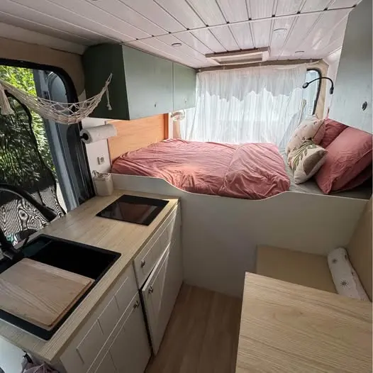 Traduire avec Google TranslateDer Camper ist voll ausgestattet mit folgenden Apparaten: - Dusche im Kofferraum mit warmen Wasser Dank Boiler der Marke Pundmann mit 9L Reservoir - Immer Strom dank 320W Solar Anlage auf dem Dach - gekocht kann mit Induktion und Gaz Herd Platte
