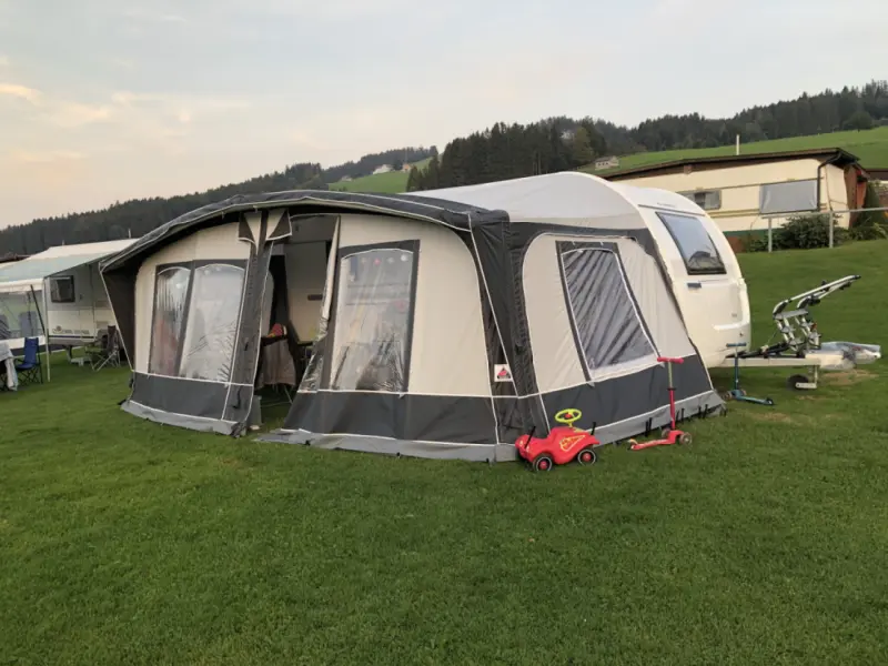 Vorzelt oder Sonnenzelt muss zusätzlich gemietet werden