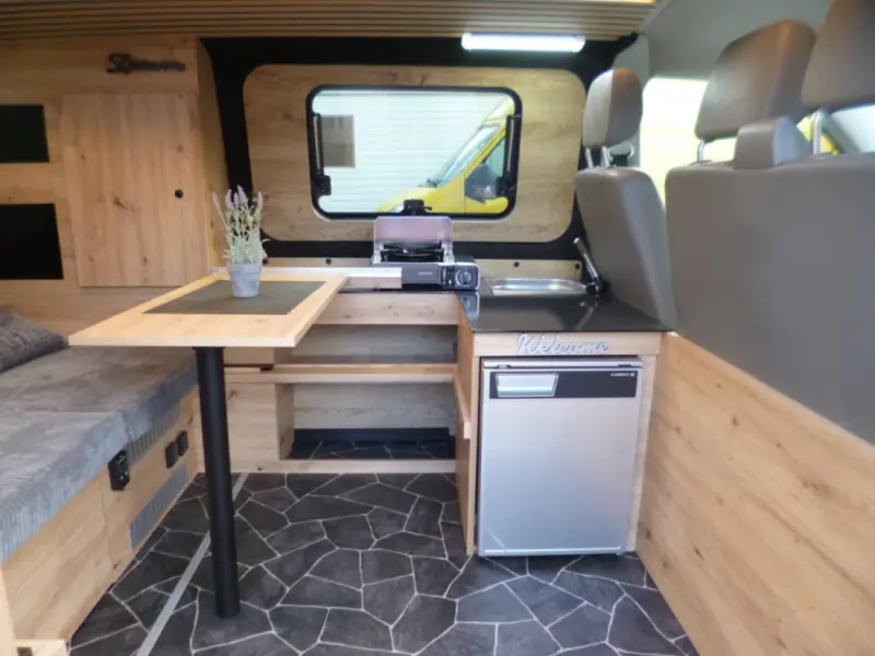 Traduire avec Google TranslateCamper VW T5 wahrscheinlich der schönste T5 in der Schweiz grosse Küche, grosses Bett 125 x 200, Isoliert Winterfest, Sehr viel Stauraum. einmaliges Bettkonzept der Umbau von Wohnzimmer zu Schlafzimmer dauert 2 Sekunden und benötigt nur einen Handgriff. Voll Autark ! 120 Ah Lithium / Victron Ladebooster /Victron Charger CEE Anschlus 220 Volt, Solaranlage, Inverter für 220 Volt unterwegs, Diverse USB Anschlüsse, Victron Solarregler, Eingebauter 50 Ltr. Kompressorkühlschrank. uvm. Konstruktionsjahr: 11.2025 . Gesamter Bau neu und unbenutzt.