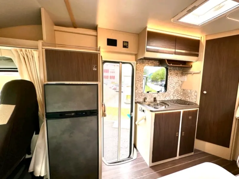 Traduire avec Google TranslateDas Womo verfügt über ein brandneues Navigationssystem inkl. tollem Radio mit der neusten Technik (Android/iOS Anbindung möglich) sowie DAB Radio mit Kamera für hinten. USB Anschlüsse zum Aufladen von Handy & Co hat es diverse - Kabel sind vorhanden. Es hat ein 1.40x2m grosses Doppelbett hinten. Die Sitzgruppe kann man relativ schnell zu einem zusätzlichen Bett umfunktionieren. Dieses ist ca 1m Breit aber nur ca 1.70 lang, dh eher für ein Kind. Dafür hat es noch zusätzliche Polster die man haben kann für eine verbreiterung dann ist es ca 1.20m breit. Einfach fragen :-) Wir freuen uns auf tolle Mieter.