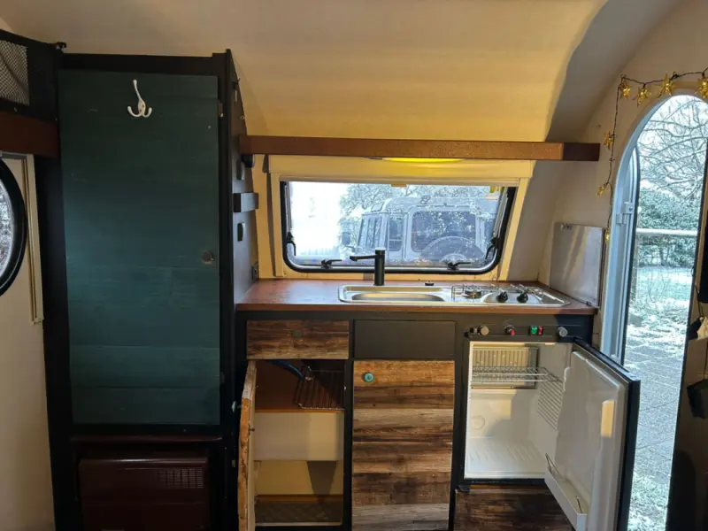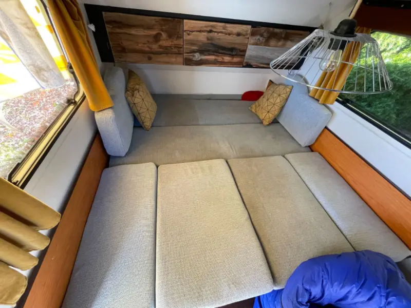 Voir le texte originalNotre caravane Tabbert TaB 320 (surnommée « Cuddle Bug ») attire tous les regards sur les campings grâce à son design rétro unique. Sa conception compacte et maniable la rend idéale pour les petits emplacements et les routes étroites. Légère et aérodynamique, elle est parfaite pour les petits véhicules tracteurs et permet de réduire la consommation de carburant. L'agencement astucieux de l'espace offre de nombreux rangements et des fonctionnalités pratiques, optimisant ainsi chaque centimètre carré. Avec un chauffage performant pour un confort optimal par temps frais et un porte-vélos pratique pour les excursions improvisées, elle offre tout le nécessaire pour vos aventures. Dotée de trois couchages et d'une cuisine fonctionnelle, c'est la caravane idéale en toute saison. Grâce aux panneaux solaires, vous profitez d'une liberté et d'un confort absolus, même sans branchement électrique. Séjour : - Coin salon confortable en forme de U - Rangements pratiques sous les banquettes et dans les placards hauts - Éclairage d'ambiance - Fenêtres en PVC de haute qualité et aérateur de toit (40 x 40 cm) avec moustiquaire - Prises 230 V Lit : Le lit est astucieusement conçu. Il se transforme en escamotable à partir du spacieux coin salon en forme de U. Une fois la table basse abaissée et les coussins disposés, on obtient un grand lit confortable (surface de couchage d'environ 175 x 200 cm). Ses dimensions offrent un espace généreux pour deux adultes ou une petite famille. Cuisine : La cuisine, compacte et fonctionnelle, est équipée de tout le nécessaire pour préparer les repas dans un espace réduit. - Plaque de cuisson : Plaque à gaz 2 feux - Évier en inox - Réfrigérateur : Capacité de 60 litres avec compartiment congélateur pour une conservation optimale des aliments. ...` ``` Porte-vélos : - La Tabbert 320 est équipée d'un porte-vélos spécialement conçu pour ce modèle. - Position : Fixé sur le timon de la caravane. - Charge maximale : 30 kg. Contrôle technique de la remorque : Avec un permis de conduire de catégorie B, vous pouvez tracter une caravane tant que le poids total autorisé en charge (PTAC) du véhicule tracteur reste inférieur à 3,5 tonnes. La Tabbert ne devrait pas poser de problème à ce sujet.