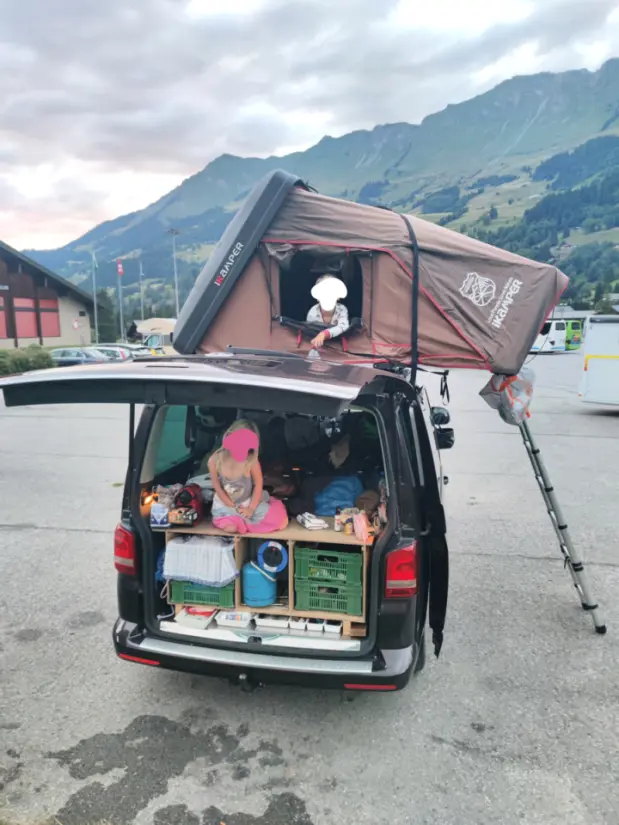 Traduire avec Google TranslateEgal ob Wochenendtrip oder längere Ferien, unser Bus ist der ideale Begleiter. Der grosse Vorteil gegenüber einem konventionellen Aufstelldach ist, dass dieses Dachzelt innert 2 Minuten aufgebaut ist. Kein lästiges umräumen im Innenraum.