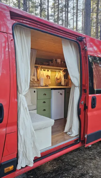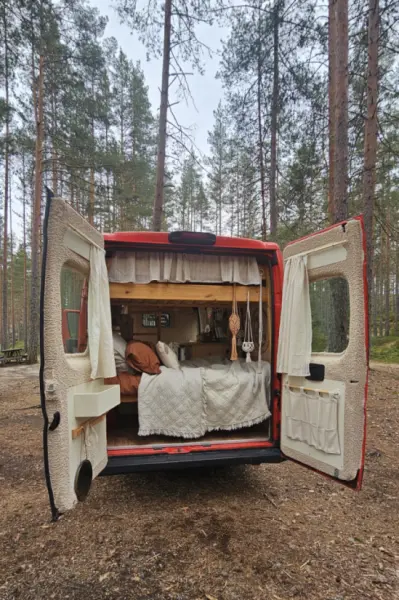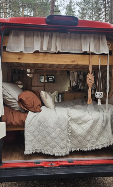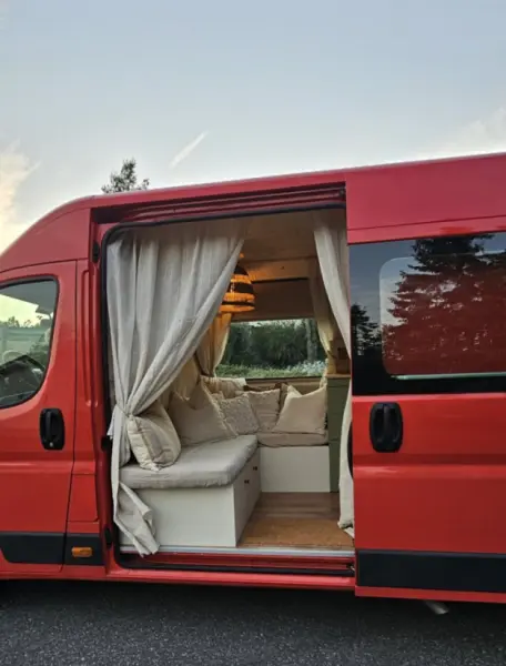 Voir le texte original🚐 Camping-car tout confort à louer – prêt pour l'aventure ! Envie de liberté sur les routes ? Ce magnifique camping-car aménagé et ingénieusement conçu est idéal pour les courts séjours comme pour les longs voyages en pleine nature 🌲✨ Véhicule : Peugeot Boxer L4 (2019) Diesel et boîte manuelle Permis B requis 🛏️ Couchage et confort Canapé convertible en lit de 120 cm Lit superposé (120 cm) Petite couchette supérieure (idéale pour les enfants/personnes de petite taille) Parfait pour les couples, les amis ou une petite famille 👨👩👧 🍳 Cuisine et équipements Cuisine avec réfrigérateur 12 V Plaque de cuisson à gaz avec grill inclus Rangements astucieux et solutions pratiques 🔌 Alimentation et recharge 4 ports USB-C dans le séjour Possibilités de recharge supplémentaires dans la cabine conducteur 🌿 L'expérience Ce camping-car est conçu pour le confort et la détente. Des matériaux chaleureux, des solutions ingénieuses et une ambiance cosy. Idéal pour se réveiller en pleine nature, avec tout le confort nécessaire à bord de votre van.