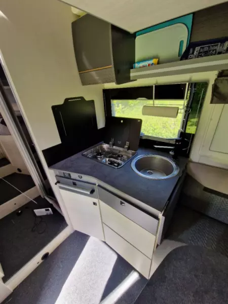 Hyvät varusteet asuntoautossa, selkeä opastus vuokrauksen yhteydessä.