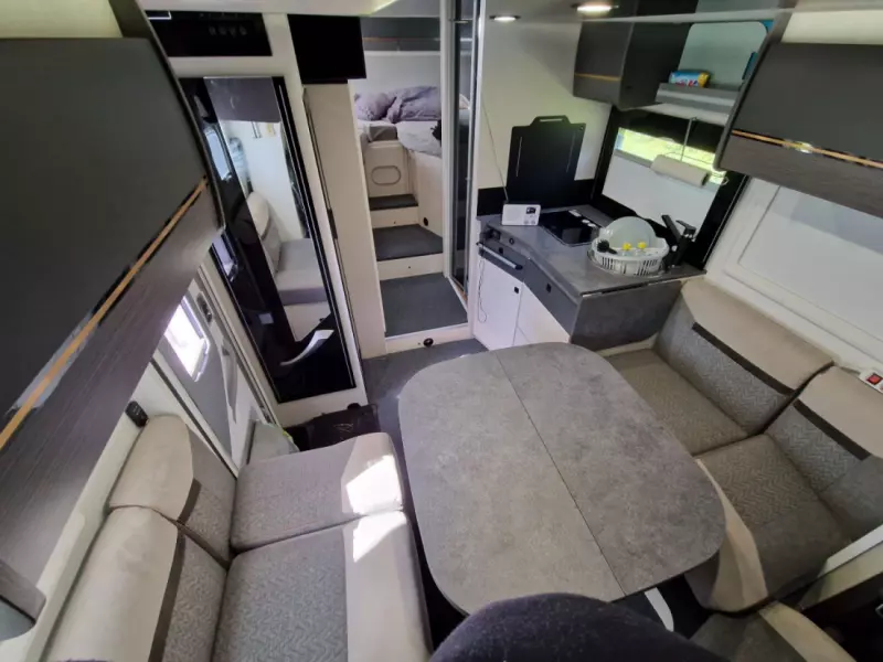 Traduire avec Google TranslateAutomaattivaihteisto, vakionopeussäädin, navigaattori. Tehokas Diesel-lämmitys oleskelutilassa. Lämminvesi kaasu/sähkö. Aurinkopaneeli, 150Ah litium-akku, 2kW invertteri. Katosta laskeutuva parivuode. Erillinen wc ja suihkutila. Isofix-valimius kahdelle turvaistuimelle Isot tavarakaapit sänkyjen alla. Iso takatalli, johon mahtuu pari polkupyörää. Polkupyöräteline kahdelle pyörälle. Markiisin led-valaistus. Ulkosähköjohto, pyöräkiilat.