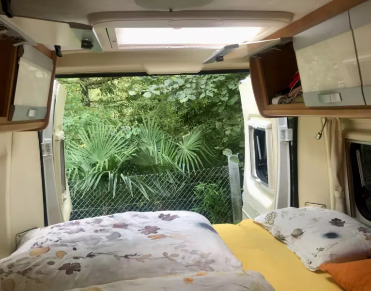 Voir le texte originalLa conduite est très facile et économique à vitesse modérée. Le véhicule se gare facilement sur une place de parking standard. Idéal pour les petites familles ou les couples. Couche à l'arrière : L x l ; 1,90 x 1,40 m ; à partir de 2023, un nouveau matelas confort monobloc sera disponible. Un couchage supplémentaire peut être installé à l'avant : 0,70 x 1,90 m. ⚠️ Les planches de surf ou les objets encombrants se transportent facilement sur les barres de toit !