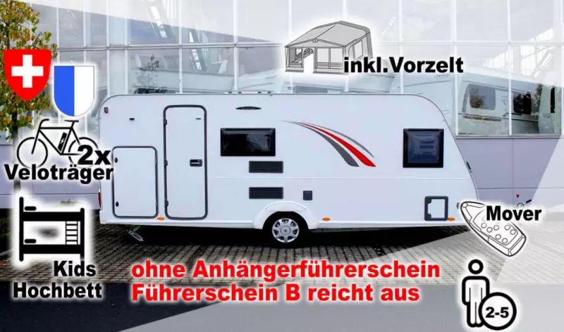 Einen Wohnwagen zu mieten ist besonders für Familien oder Paare eine bequeme und preiswerte Angelegenheit, wenn sie ihre Ferien auf einem Campingplatz verbringen möchten. Auf MyCamper können verschiedene Wohnwagenmodelle unkompliziert und inkl. Versicherung von Privaten gemietet werden. Von modernen Bürstner Grosswohnwagen und süssen Tabbert Teardrop Anhängern bis zu stilvollen Oldtimer Caravans von Eriba oder Constructam – alles, was das Camperherz begehrt.